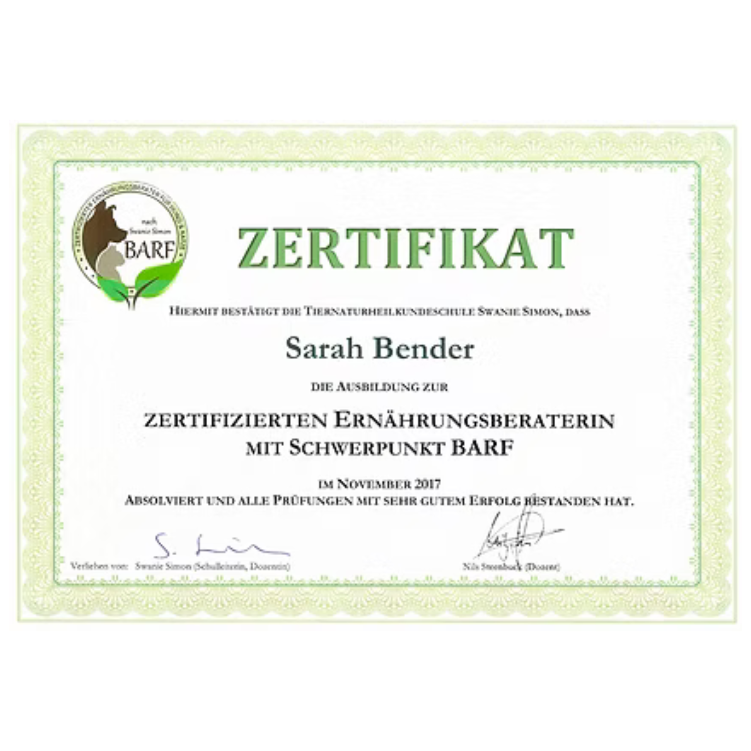 Ich habe mich im November 2017 zur zertifizierten BARF-Beraterin ausbilden lassen. Seitdem bin ich überzeugt davon, dass Individualität das A und O einer gesunden Ernährung ist – bei uns Menschen wie beim Tier. Denn jeder Hund ist einzigartig und deshalb sollte auch sein Futter ganz genau auf ihn und seine besonderen Bedürfnisse abgestimmt werden. Gerne helfe ich Dir dabei!